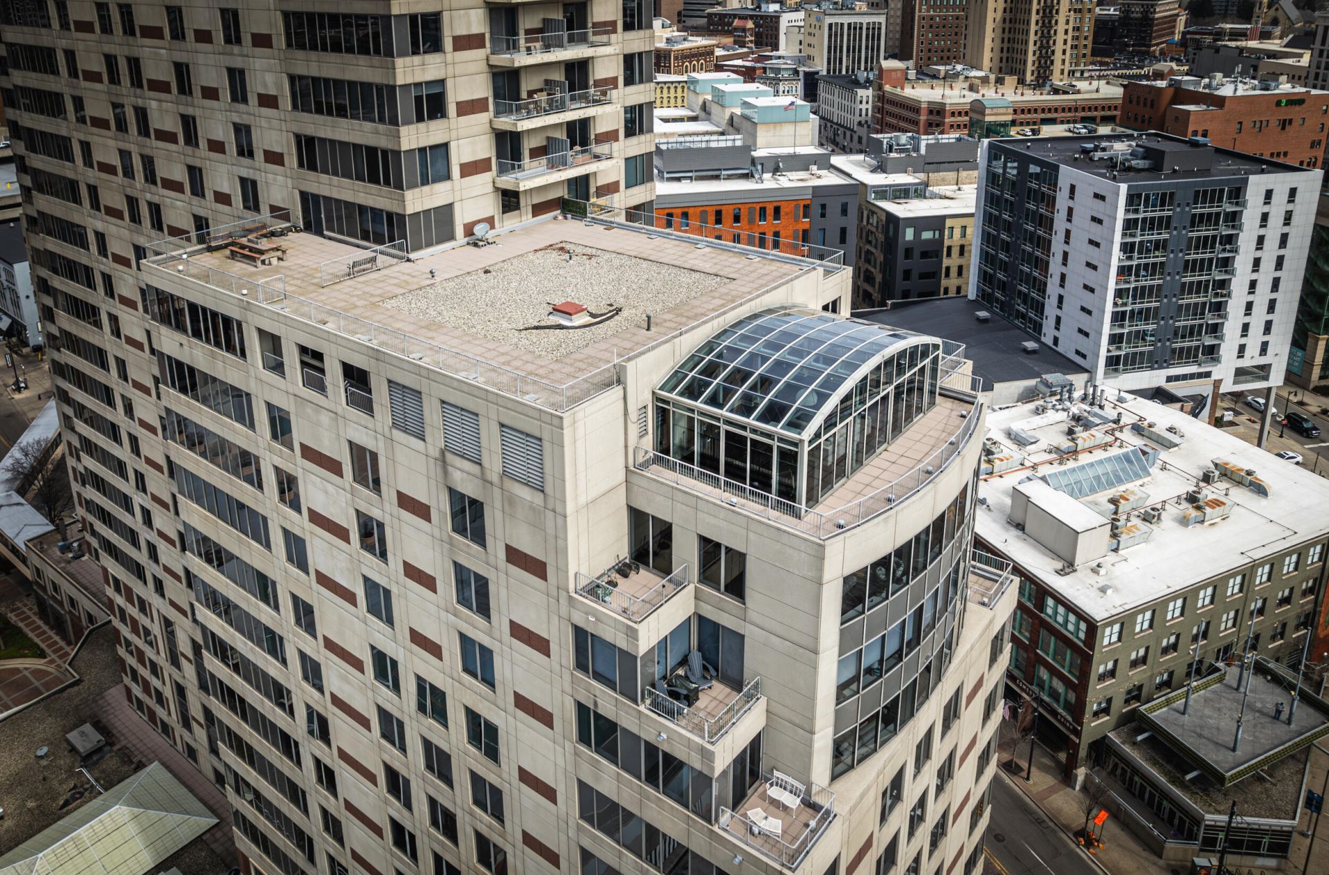 Positioned atop the skyline, this 18th-floor executive penthouse represents one of the most exclusive luxury residences in downtown Grand Rapids--designed for those who value privacy, prestige, and elevated living.At the heart of this one-of-a-kind residence is a rare, glass-enclosed sky lounge spanning over 500 square feet--an architectural showpiece featuring a full wet bar and panoramic city views. Widely regarded as one of the most distinguished private entertaining spaces in Grand Rapids, this signature feature delivers a seamless indoor-outdoor experience that rivals top-tier luxury properties in major metropolitan markets.Encased in floor-to-ceiling glass, the residence captures unobstructed, sweeping views of the downtown skyline, Grand River, and beyond--offering an ever-changing backdrop of natural light and city energy from nearly every room. A full wraparound terrace further expands the living experience, creating multiple outdoor environments for private relaxation or large-scale entertaining--an exceptionally rare offering in the downtown market.Inside, the open-concept design is both sophisticated and functional, with expansive living and dining areas tailored for executive lifestyles. The chef-inspired kitchen features custom cabinetry, premium finishes, and generous workspace--ideal for both everyday living and hosting at scale.The primary suite serves as a private executive retreat, elevated above the city with commanding views and designed for refined comfort. The spa-caliber bathroom includes a steam shower, heated floors, and luxury finishes--delivering a daily wellness experience comparable to five-star accommodations.Residents benefit from a full-service luxury amenity package, including 24/7 security, indoor pool, hot tub, state-of-the-art fitness center, and an expansive outdoor recreation deck with basketball and tennis courts. A climate-controlled skybridge provides seamless connectivity--an added level of convenience rarely found in downtown living.Strategically located near the Grand River, riverfront amphitheater, and the citys new professional soccer stadium, this residence sits at the epicenter of Grand Rapids continued economic growth, cultural expansion, and real estate appreciation.Featuring two bedrooms, two full bathrooms, and the rare advantage of two reserved parking spaces, this penthouse is uniquely positioned within the market.This is more than a residence--it is a legacy asset, a private sanctuary, and a definitive statement of success in the heart of Grand Rapids.