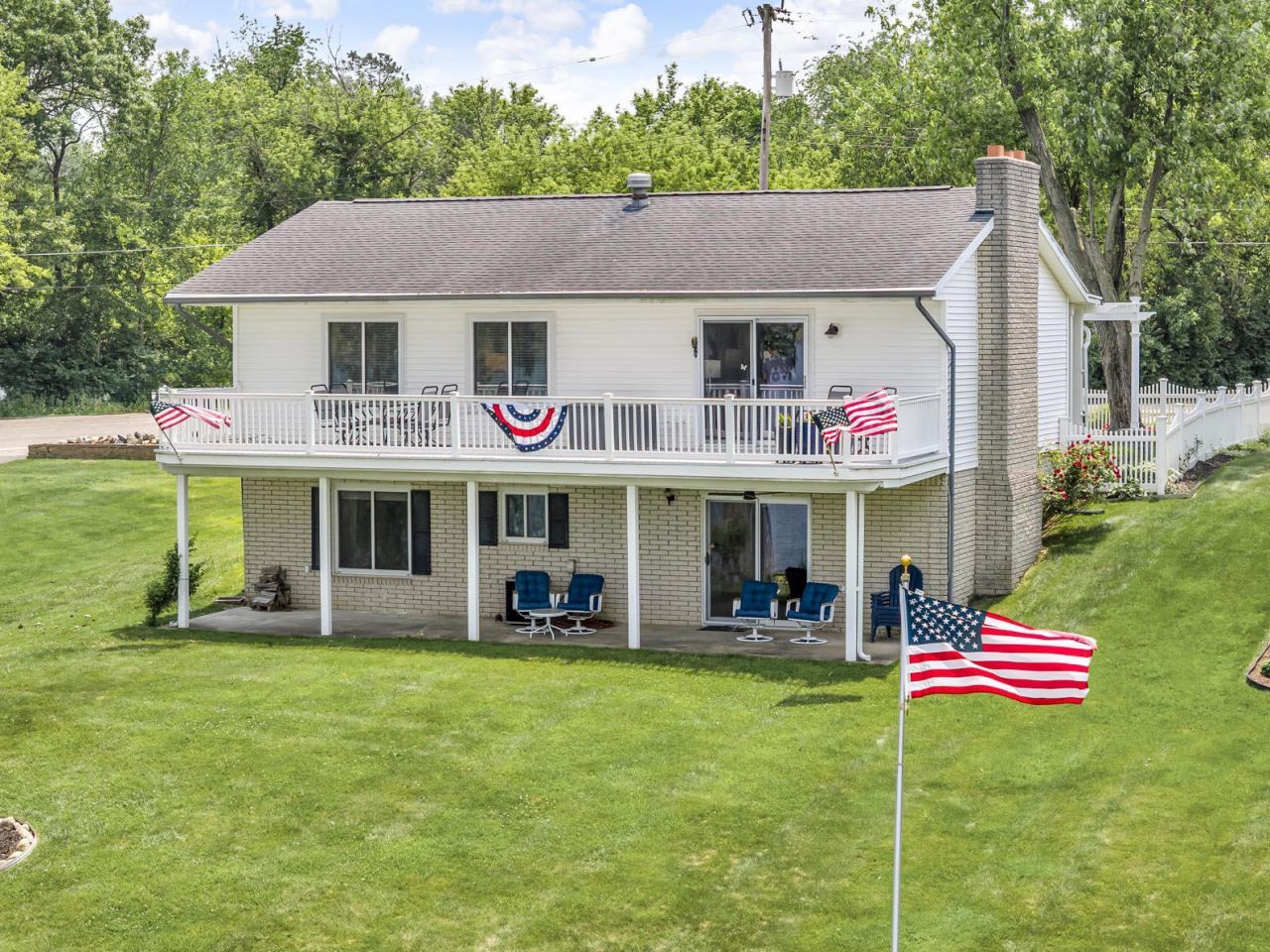 Location, location, location! This charming 3-bedroom, 2-bath lakefront home offers everything youve been looking for, with 64 feet of frontage on the all-sports South Lake LeAnn, tucked away on a quiet cul-de-sac. Enjoy sweeping views of glistening water and stunning sunsets from multiple vantage points throughout the home. The inviting front entry features a welcoming porch, stylish pergola, fenced yard, and attached two-car garage--perfect for relaxing and enjoying the peaceful setting. Inside, the main level offers a bright kitchen and dining area, along with a cozy living room featuring a fireplace and direct access to a spacious deck overlooking the lake. All three bedrooms enjoy beautiful water views, creating a memorable experience for family and guests alike. The finished walkout lower level is ideal for entertaining, complete with a large living area, custom wet bar, second fireplace, and a newly renovated full bathroom. An additional bedroom with a tray ceiling and oversized closet provides a perfect option for a primary suite or guest retreat. Outdoor living shines with both an upper deck and a covered patio below, enhanced by an under-deck ceiling system for added comfort and usability. The lakeside yard features new landscaping and an underground irrigation system fed directly from the lake. Additional highlights include a large stone parking pad for extra guest parking.Dont miss this opportunity to own your slice of lake life--schedule your private showing today!