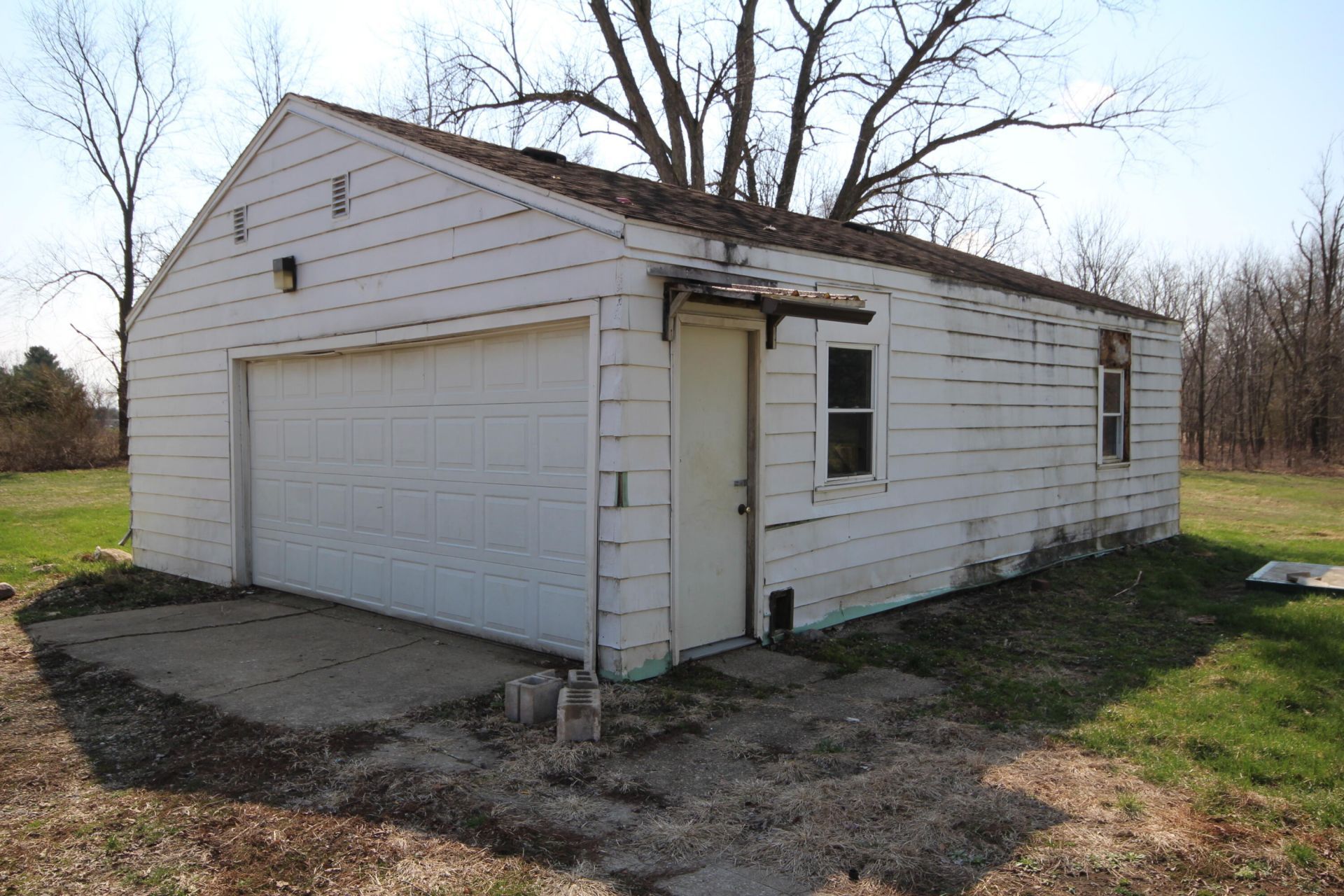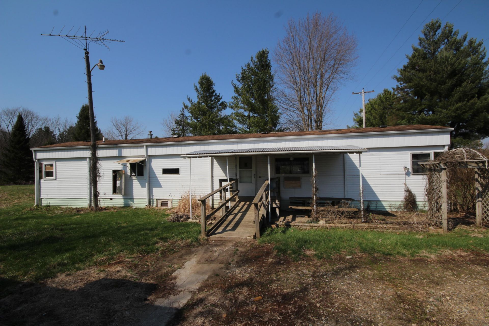 1.5 Acres, 25 x 32 2-car garage & single wide mobile home in need of rehab. Cash only. Property is being sold in as-is condition. Age of mobile home is estimated. 5 diameter water well located just south of the garage. Septic system with raised tile field to the northwest. Great area for gardening with grape vines. Vicksburg Schools!
