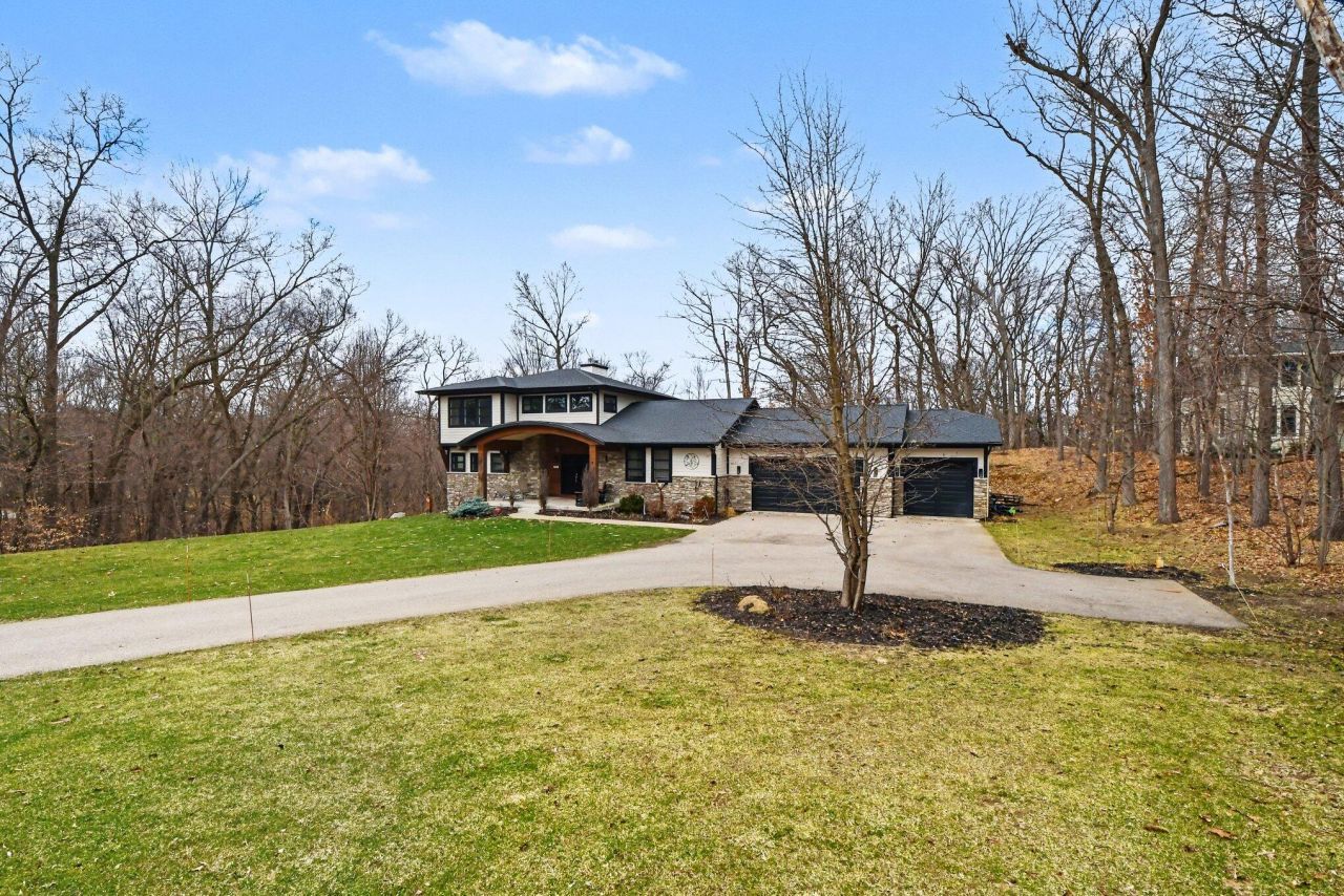 Custom-built for the current owner, this luxury home sits on a gorgeous 2.33-acre site, with a wooded backdrop, situated on a private cul-de-sac drive with NO HOA! Features a welcoming foyer with custom inserts designed by a local glass artist; a dramatic great room with floor-to-ceiling windows that allows natural light to pour in, gas fireplace, custom woodworking and built-ins; a large kitchen with a center island, stainless steel appliances, and a walk-in pantry; back hallway with a custom-designed office, laundry room, powder room, a utility closet and lockers; main floor primary suite with huge bedroom, French door to the deck, a walk-in closet and huge tiled bath with soaking tub and oversized shower. Upstairs youll find an open loft area, two bedrooms with custom built-ins and walk-in closets, and jack-n-jill bath. The lower level boasts a huge family room with wood stove and built-ins; a wet bar with a beverage fridge; a game area; a fourth bedroom with a walk-in closet; a full bath with dry sauna; and a light-filled Flex Space with an expansive ceiling, and walls of windows - perfect for a bedroom, studio, playroom, exercise room, office, and so much more. There are plenty of outdoor entertaining areas with a large yard, a composite deck and screened-in porch with views of wooded rolling hills, and a covered patio and hot tub right outside the lower level slider. This convenient location is close to Knapp Corners, shopping, dining, entertainment, parks, daycare centers, schools, and is just minutes to the highway for easy access to downtown.