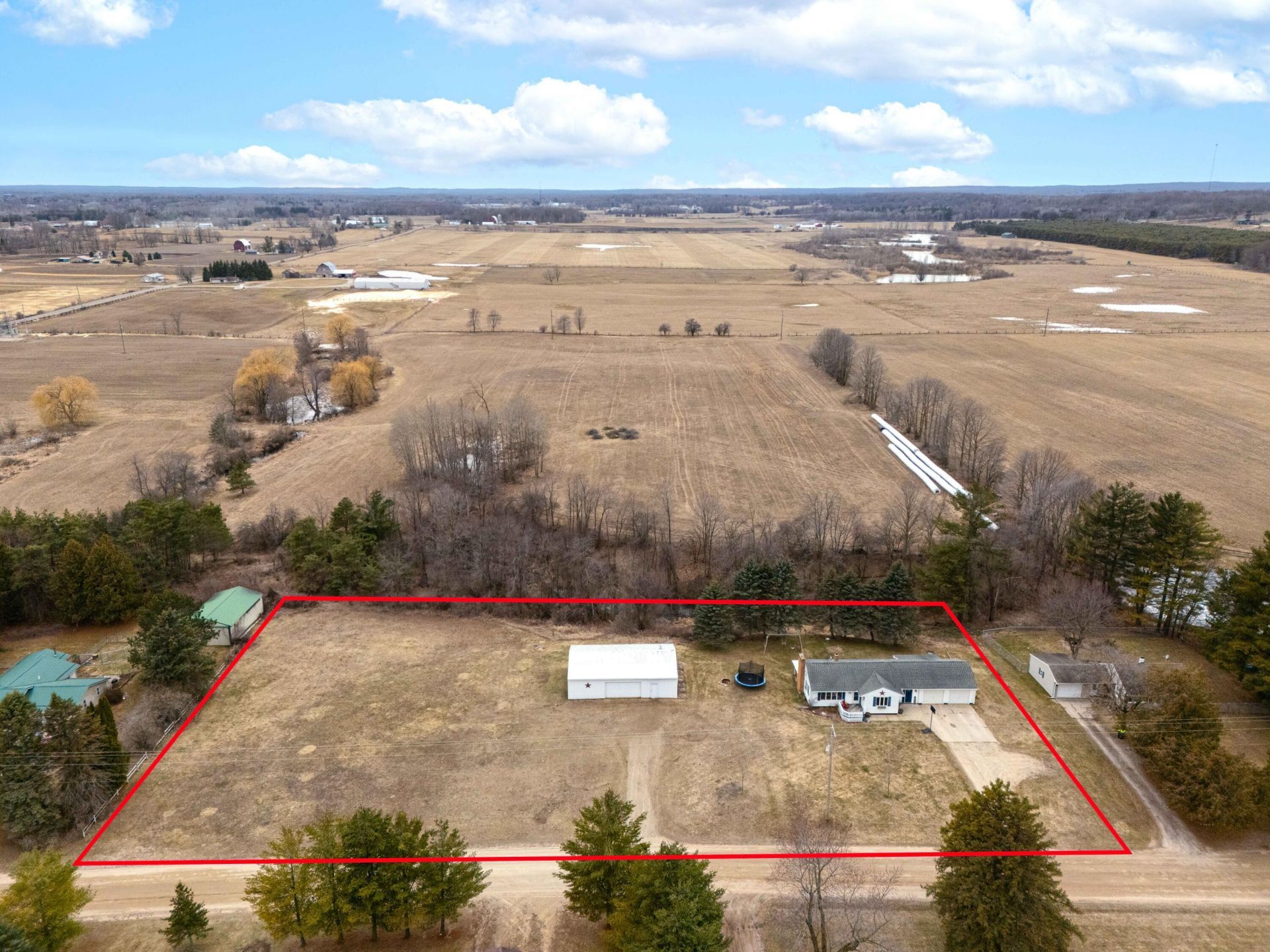 Welcome to this well-maintained 3-bedroom, 1.5-bath ranch nestled on 1.74 peaceful acres just outside of Clare! This inviting home offers comfortable main floor living with a functional layout and plenty of space to spread out both inside and out. The spacious eat-in kitchen features ample cupboard space, making meal prep and storage a breeze, while the convenient main floor laundry adds to the homes ease of living. The bright and airy sunroom is the perfect spot to enjoy your morning coffee or unwind while taking in views of the surrounding countryside. Recent updates include bathrooms and kitchen flooring. The partially finished walk-out basement adds valuable living space, featuring a cozy family room with a fireplace. Theres also plenty of additional room for storage or hobbies. Ample parking and storage abounds with a 2-car attached garage, while the impressive 30x50 pole barn is a standout feature with electric, concrete floors, and partial insulation and heat. With its combination of comfort, functionality, and room to roam, this property offers the best of country living while still being just a short drive from town amenities.